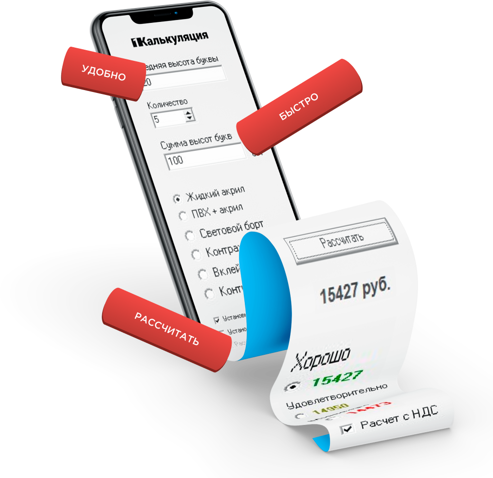 Быстро и точно рассчитывает стоимость рекламных конструкций, даже если цены на материалы меняются каждый день